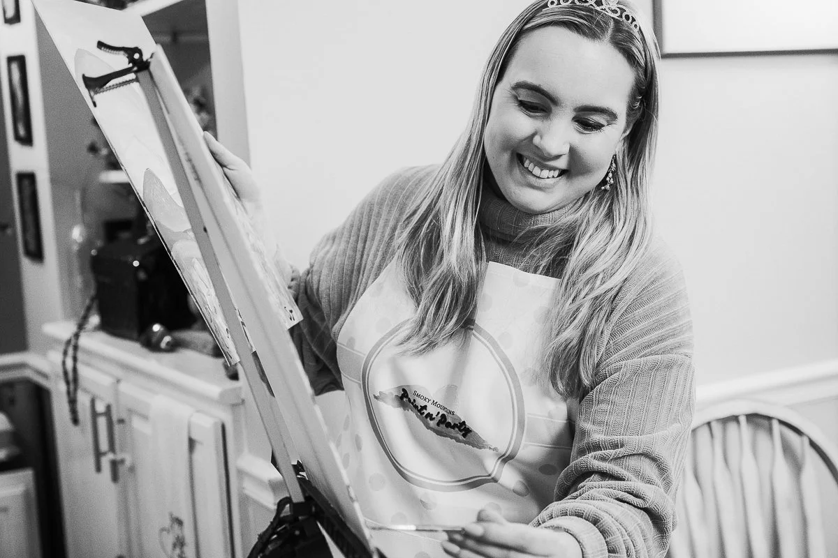 Hi, I’m Sylvia, the founder and instructor of Smokey Mountain Paint and Party. I am a multimedia artist and a local muralist, and my roots are in both art and Tennessee. I was born and raised here and started painting before I could even hold a brush, because fingers are always an option when creativity calls.
